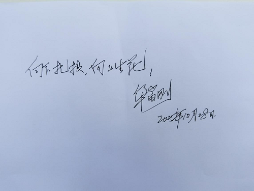 临别之际,牟老提笔写下“向下扎根,向上生花”八个字,寄语青年社员们踏实履职、专注钻研,多建有用之言,多献务实之策。