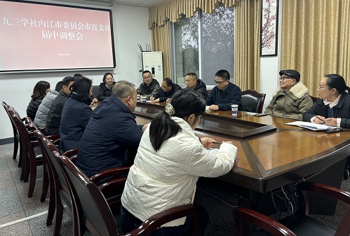 2025年12月10日,九三学社内江市委市直支社召开支社全体会议进行届中增补选举。九三学社内江市委副主委林海亮、邹兰斌出席会议,秘书长吴英主持会议,市直支社主委马忠及支社社员共14人参加会议。