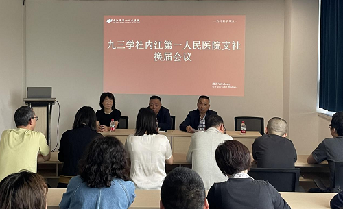 4月22日下午,九三学社内江市第一人民医院支社在全科医师楼举行换届会议。九三学社内江市委专职副主委邹兰斌出席并主持会议,市第一人民医院党委副书记陈生文及九三学社内江市第一人民医院支社在职社员参加会议。