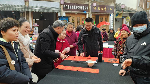 1月17日,九三学社内江市委员会、内江市红十字会在内江东兴老街联合举行2026年“红十字会博爱送万家”活动启动仪式。四支社积极参与并协助开展活动,四支社社员张国民在活动现场为市民书写春联,他挥洒自如、行云流水般的书法技艺赢得了现场市民的一致好评。